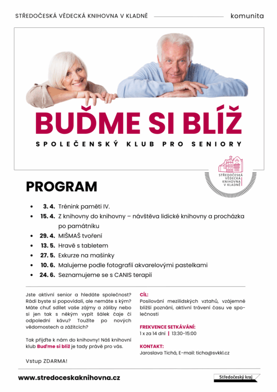Sociálním vyloučením dnes trpí stále více seniorů a my bychom s tím rádi trochu pomohli. Zveme vás proto do knihovny na další setkání společenského klubu pro seniory – Buďme si blíž.