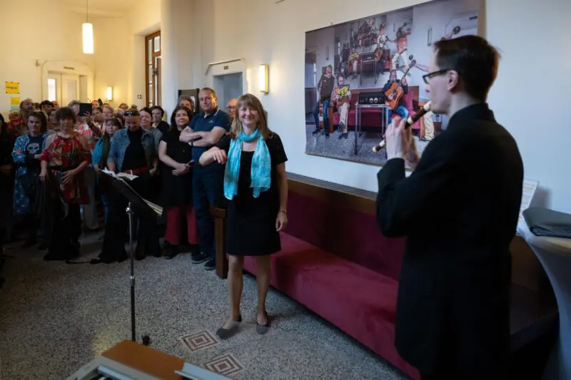 Slovem výstavu uvede Zuzana Landsingerová. Hudbou ji vyprovodí pěvecký sbor GAUDIUM pod vedením Lenky Kubínové.