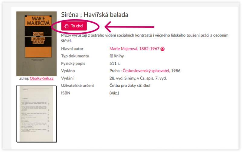 • Ve vyhledávání na webu najděte požadovaný titul. Klikněte na tlačítko To chci.